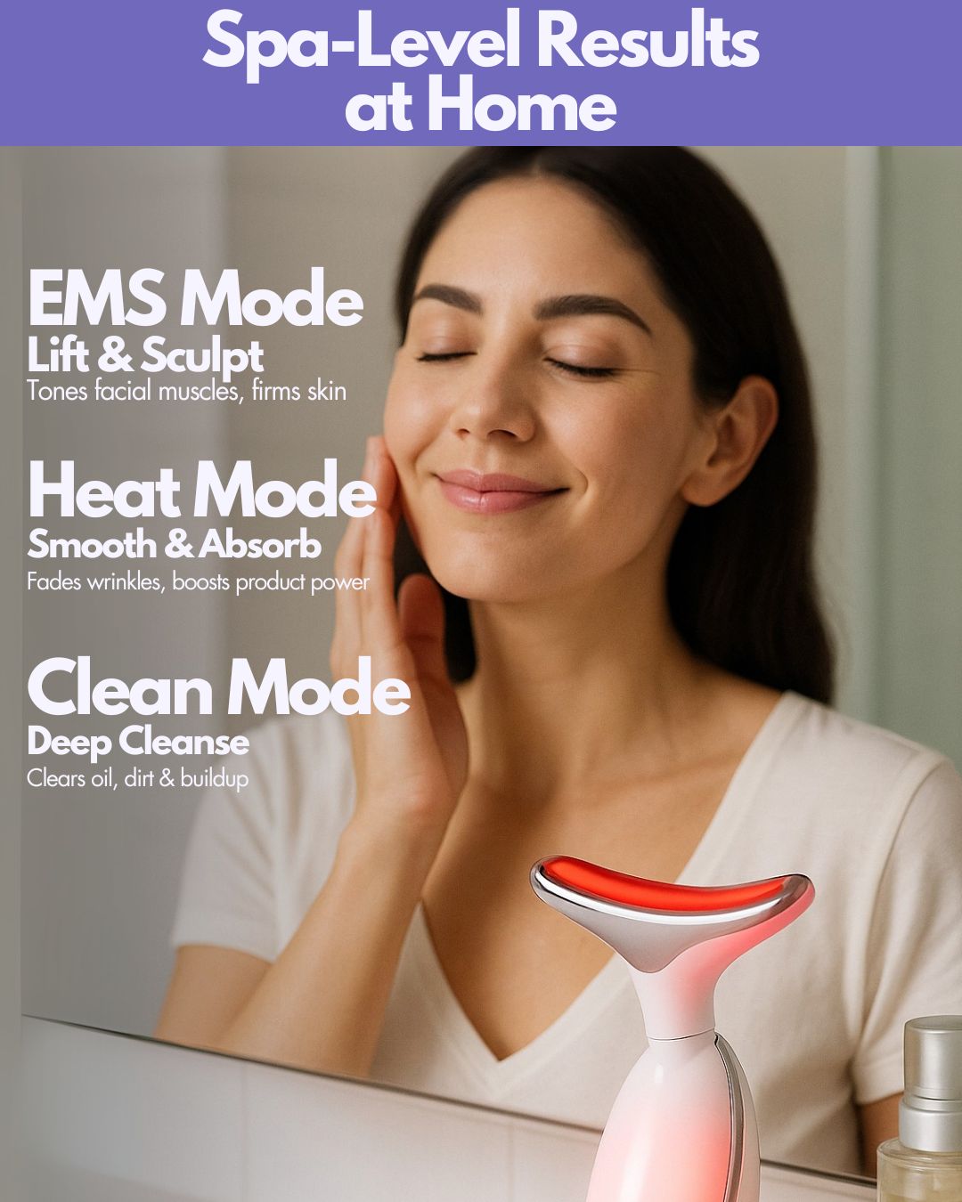 The warming function is soothing, not harsh — it feels like a gentle facial massage.